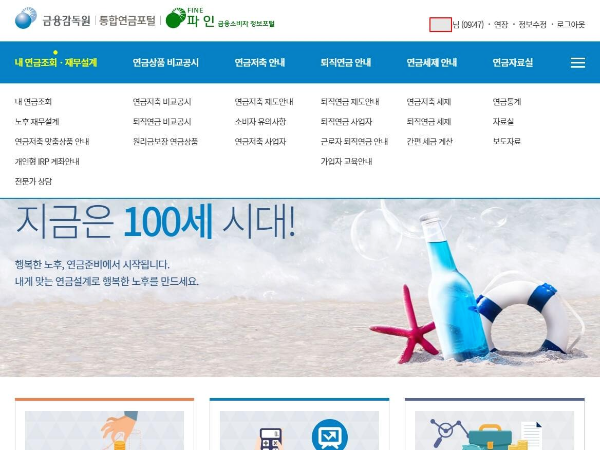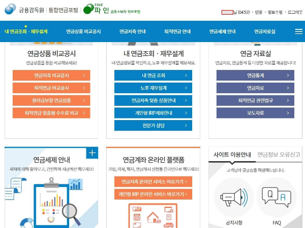 사이트내에는 연금에 관한 다양한 정보와
