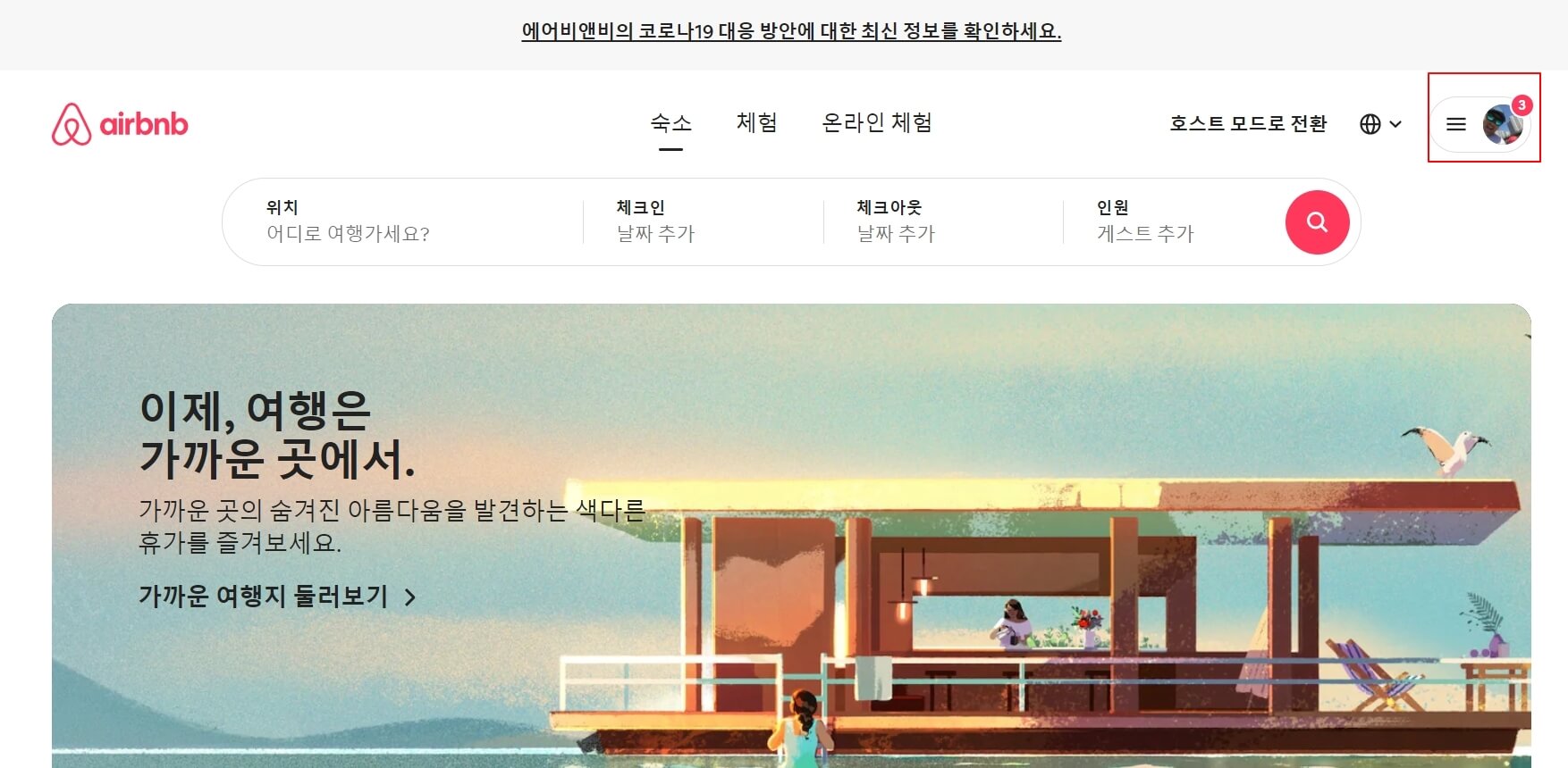 붉은 박스처럼 에어비앤비로 바로 접속합니다.