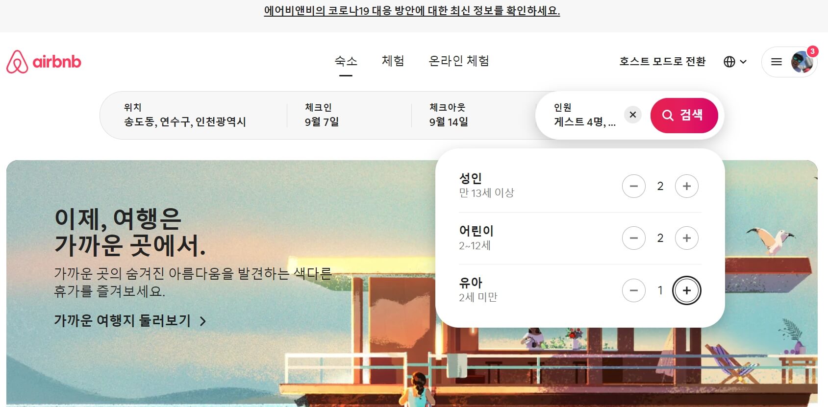 숙박료도 줄일 수 있는 에어비앤비를 찾아보자했습니다.