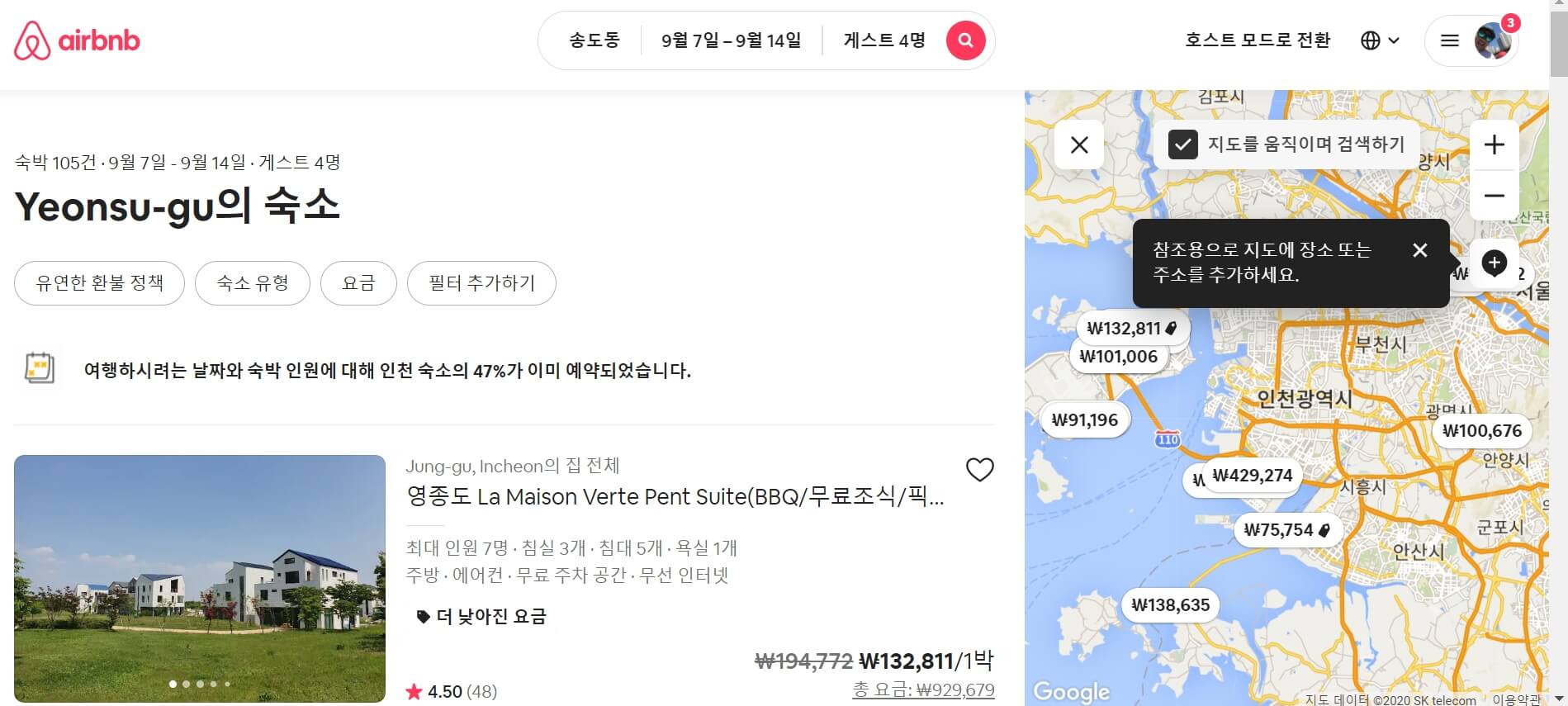 함께 에어비앤비로 숙소를 찾아보도록 하겠습니다.