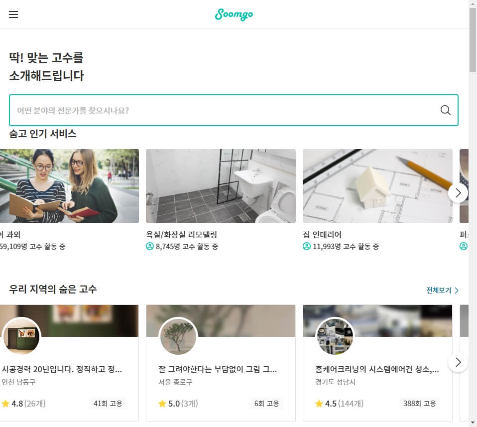 오늘은 지난 글에서 소개드렸던 숨고에 대해서 좀 더 알아볼까 합니다.