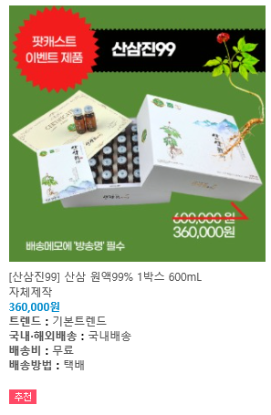 산삼진99라는 건데, 제 아내가 돈 주고 산 제품으로