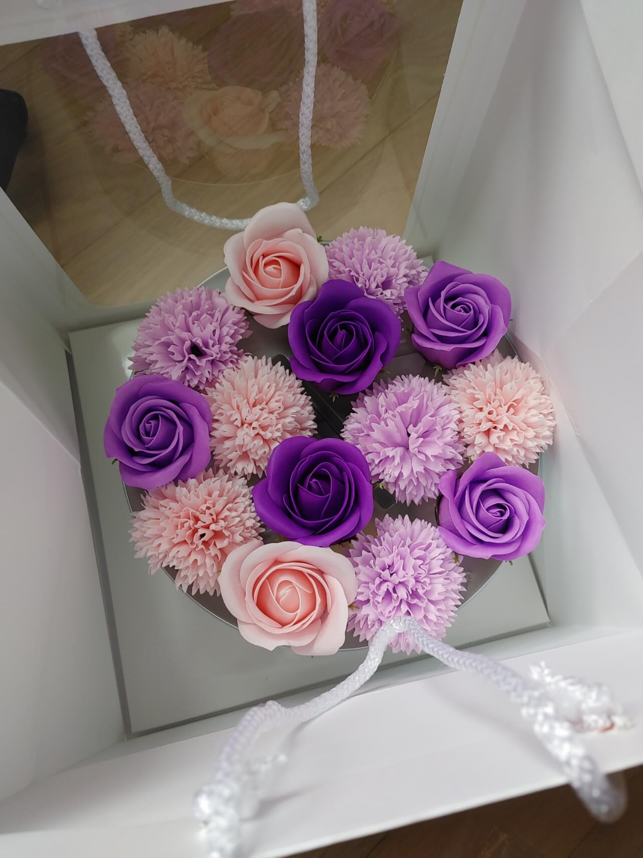 향기로운 비누꽃이 있는 윗뚜껑을 들어 올려,