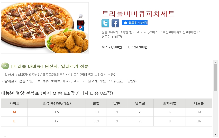 피자와 후라이드치킨, 펩시콜라 1.25리터와