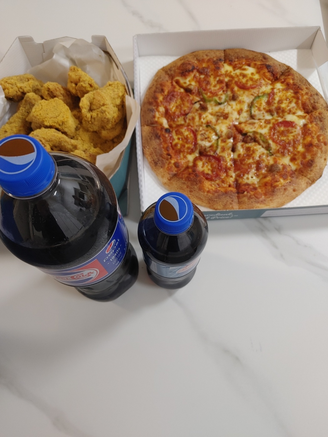 피자와 후라이드치킨, 펩시콜라 1.25리터와