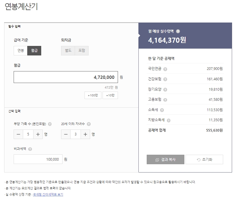 위의 연봉계산기와